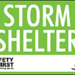 Shelter-in-Place signs are located on every floor, reminding everyone to stay away from exterior walls and windows in the event of inclement weather.